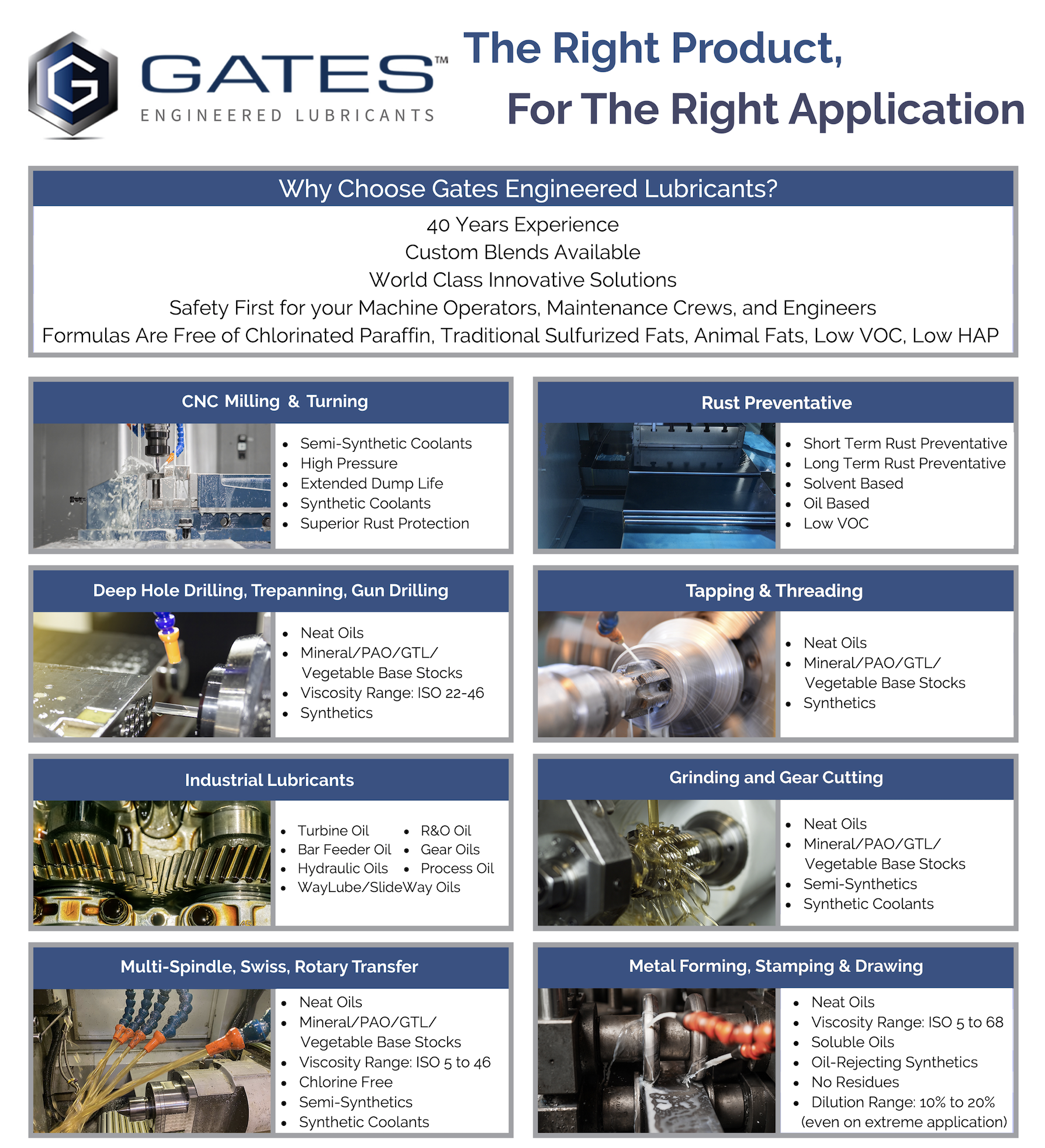 Gates Engineered Lubricants fue fundada por Jerry Gates en 2005, después de pasar más de 30 años en la industria. El objetivo de Jerry era ofrecer una línea completa de fluidos industriales especiales e innovadores a las empresas del área de Houston, para que pudieran mejorar el funcionamiento de su equipo. Su visión rápidamente se hizo realidad. Hemos brindado innumerables soluciones tanto a pequeños como a grandes fabricantes a nivel global.